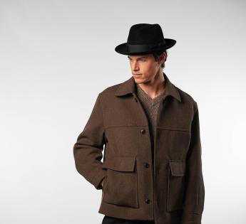 La forme Fedora intemporelle est sublimée par un bord franc modelable, qui peut être porté tombant ou relevé, selon le style désiré. Un chapeau à la fois raffiné, technique et polyvalent, pensé pour ceux qui cherchent l’élégance sans compromis.