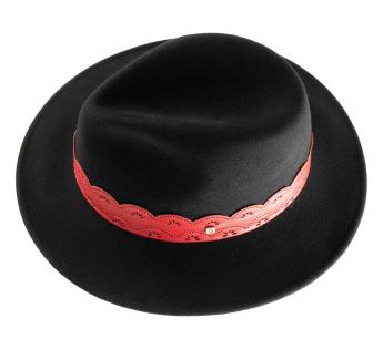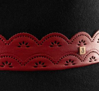 Le galon en simili cuir, travaillé comme une dentelle ajourée, apporte une touche de féminité assumée. Son contraste intense insuffle une énergie bohème et rock chic. La griffe discrète signe notre création artisanale. Ce chapeau incarne l’équilibre parfait entre sophistication, originalité et liberté de style.