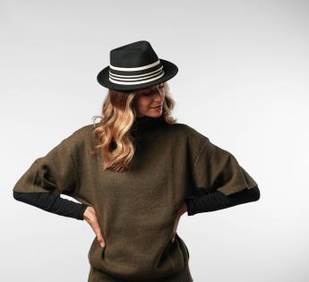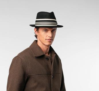 Équilibre parfait entre sobriété et audace, ce chapeau Fédora à bord mi-long séduit par sa forme discrète et facile à adopter au quotidien. Confectionné en feutre léger mais chaud, il est rehaussé d’un galon ultra graphique mêlant maille texturée, satin lisse et finitions contrastées.
