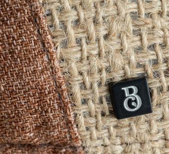 • Calotte en toile de jute, issue de sacs à café recyclés, cette matière de caractère séduit par son aspect texturé, sa belle tenue et sa résistance.