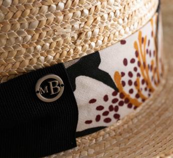 Un chapeau au multiples facettes qui danse avec la lumière estivale. Son ruban aux motifs végétaux joue de motifs abstraits, contrastés et colorés.