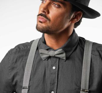Pré-noué et réglable, il s’adapte en un geste. À porter sur une chemise unie ou avec les bretelles assorties pour un look dandy assumé. Un accessoire qui fait toute la différence.