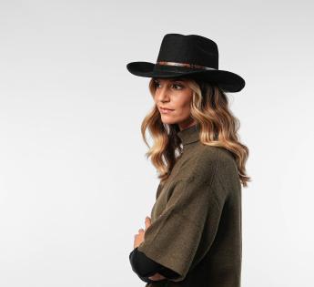 La garniture effet serpent, relevée d’une griffe métallique, signe un style affirmé, à la frontière du rustique et du raffiné. Ce modèle s’inspire des légendes de l’Ouest tout en gardant une élégance bien française. Un couvre-chef de caractère, prêt à tracer sa route entre tradition artisanale et esprit aventurier.